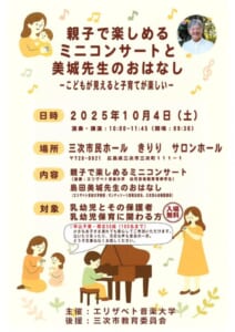 親子で楽しめるミニコンサートと美城先生のおはなし~子どもが見えると子育てがたのしい~